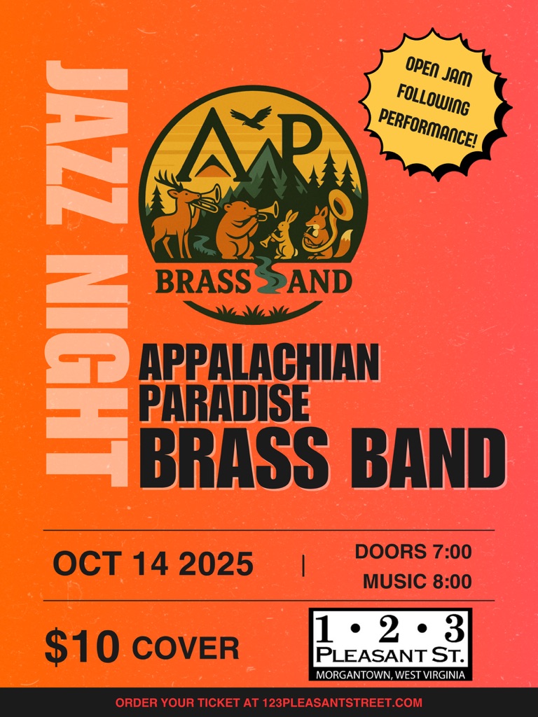 Come see us live at 123 Pleasant Street, Morgantown, WV!